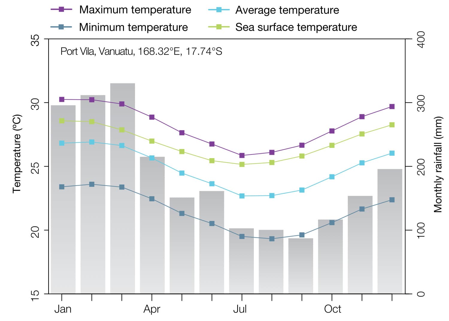 Climate showcases the temperature changes, current status of national ENSO, rainfall, SSL and coral bleaching. This page also includes jump offs for relevant pages to climate.